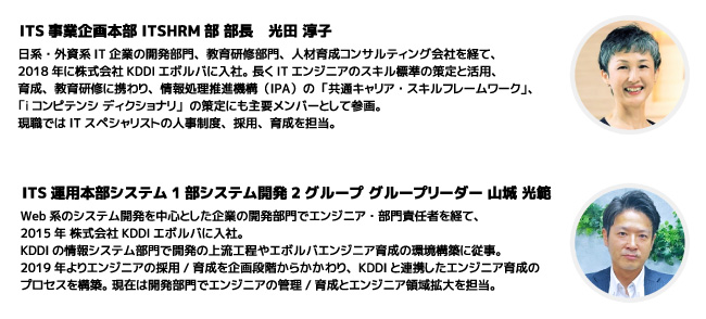 今回の講演では、「ポテンシャル採用を前提とした新卒エンジニアの育成」をテーマに、入社前のスキルアセスメントデータなどを活用し、個人と向き合いながら研修設計やカリキュラム検討を行う、KDDIエボルバ流の新入社員研修の具体的な取組みについて、ITエンジニア育成のキーマンたちがお話します。「文理不問でエンジニア採用を行いたいが、どのように育成したらよいか」「スキルのばらつきがある中、研修カリキュラムをどのようにするべきか」など、ITエンジニア育成や新卒研修設計に課題を持つ企業様に役立つ内容となります。