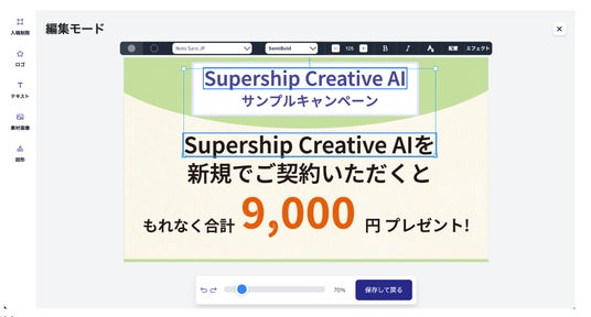 編集可能なデータ(レイヤー構造)」として出力できる点です。これにより、デザイン専門ソフトや高度なスキルを持たないマーケティング担当者でも、合格点のバナーを自ら作成・修正し、ダウンロードして活用することが可能になります。