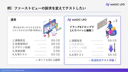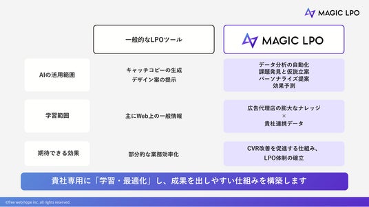 株式会社free web hope(本社:東京都渋谷区、代表取締役:相原 ゆうき)は、LP改善ツール「MAGIC LPO」において、