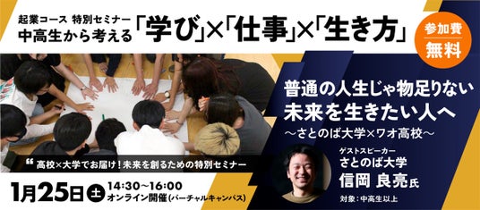 ◆起業コース特別セミナー「普通の人生じゃ物足りない未来を生きたい人へ~さとのば大学×ワオ高校~」
