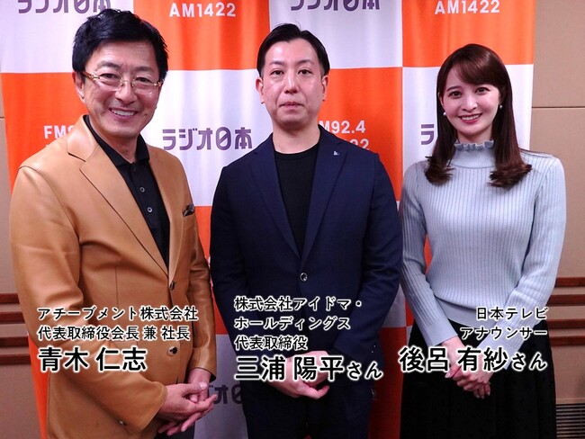 アチーブメント株式会社(所在地:東京都江東区)代表取締役会長 兼 社長の青木仁志がパーソナリティを務めるラジオ番組、青木仁志のトップリーダーと語る「成功の技術」。ラジオ日本より、毎週金曜朝の6時から始まる30分番組です。11回目・12回目の放送でゲストにお越しくださったのは株式会社アイドマ・ホールディングス代表取締役 三浦 陽平さんです。