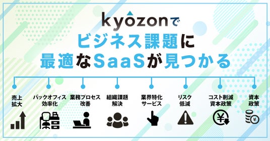 SaaS・ITサービスの比較サイト『kyozon』は、ビジネス課題に最適なITサービスが、手間なく簡単に見つかるプラットフォームです。