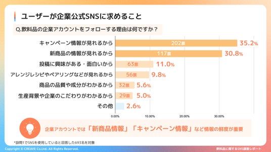 飲料品の企業アカウントをフォローする理由は、キャンペーン・新商品の情報を見るため!