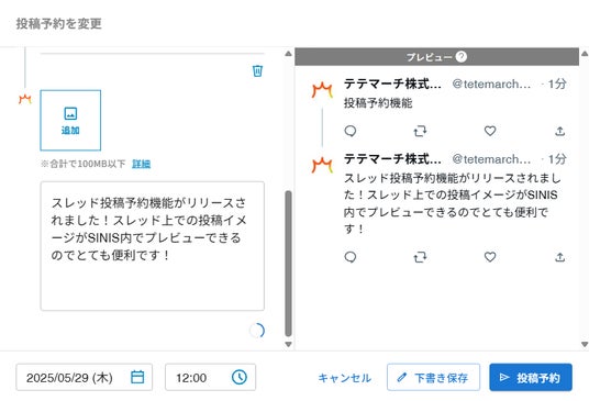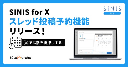 企業向け SNSマーケティング支援を中心としたビジネス展開をするテテマーチ株式会社(本社:目黒区、代表取締役:上田 大介)が運営するX分析・運用支援ツール「SINIS for X(サイニスフォーエックス)」は、2025年2月にリリースした投稿予約機能に続き、新たにスレッド投稿の予約機能を追加しました。