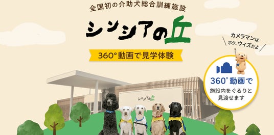 今回のリニューアルでは、より多くの方が介助犬の役割や育成の現場への理解を深められるよう、360°カメラによる施設見学機能を新たに導入した。これにより、普段は見ることが難しい訓練の場や犬たちの生活環境を、パソコンやスマートフォンからいつでも・誰でも見ることができる。