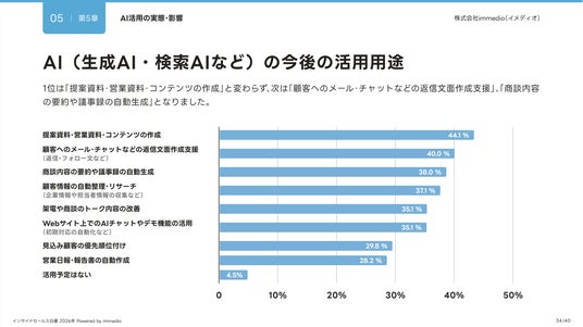 「提案資料・コンテンツ作成」「顧客への返信文面の作成支援」が中心。今後は、コンテンツ作成を軸に、