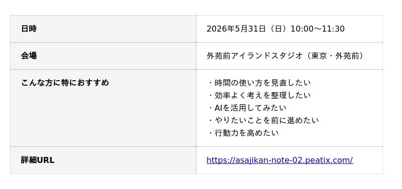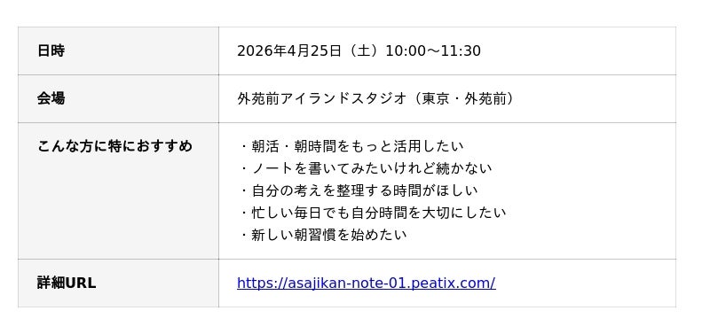 https://asajikan.jp/ )は、この春より「朝からはじめるノート習慣」をテーマにしたイベントをシリーズ開催いたします。