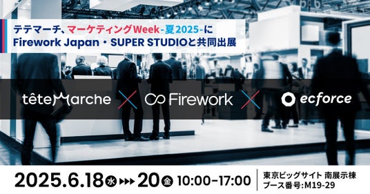 企業向けSNSマーケティング支援を中心としたビジネス展開をするテテマーチ株式会社(本社:東京都目黒区、代表取締役:上田 大介)と、動画マーケティングプラットフォーム「Firework(ファイヤーワーク)」を提供するFirework Japan株式会社(日本本社:東京都品川区、Japan Country Manager:田島一樹、以下:Firework)、統合コマースプラットフォーム「ecforce(イーシーフォース)」を提供する株式会社SUPER STUDIO(本社:東京都目黒区、代表取締役社長 CEO:林 紘祐、以下:SUPER STUDIO)は、「マーケティングWeek夏 2025」(2025年6月18日~20日、会場:東京ビッグサイト)に共同出展いたします。