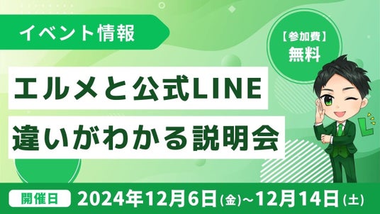 株式会社ミショナ(代表:鈴木隆宏)は、2024年12月6日からLINE公式アカウントとL Message(エルメ)の違いを詳しく解説する無料説明会を開催することをお知らせいたします。