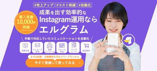 ミショナ株式会社ミショナ提供のMeta社公式APIを使用したInstagram(インスタ)運用効率化ツール「エルグラム」の導入件数が10,000件を突破。DM自動返信やメッセージ配信など充実した機能を搭載。