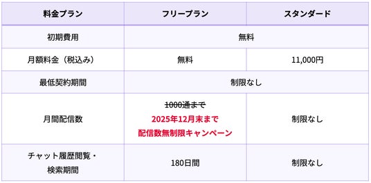 2025年12月末までの期間中、通常月間1000通までの配信制限を撤廃し、無制限でのご利用が可能となります。