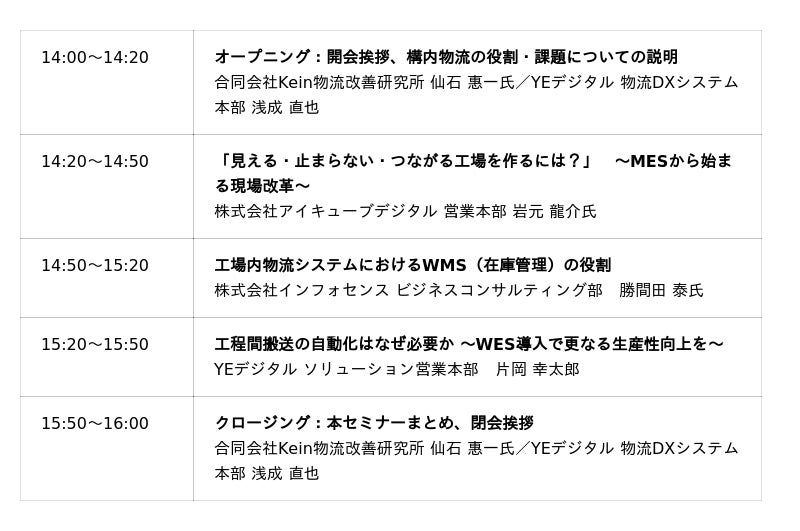 株式会社YE DIGITAL(本社:北九州市小倉北区、代表取締役社長:玉井裕治、以下、YEデジタル)は、製造現場における構内物流課題の解決に向けたオンラインセミナー