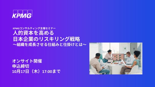 https://kpmg.com/jp/ja/home/events/2024/09/20241024-reskilling-strategy.html※希望者多数の場合は抽選とさせていただきます。また、個人および同業の方のお申込みにつきましては、お断りさせていただく場合がございますので、あらかじめご了承ください。