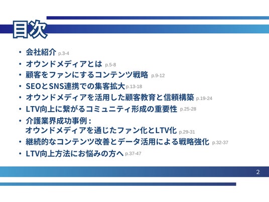 株式会社ベクトル(本社:東京都港区、代表取締役会長兼社長:西江 肇司、東証プライム:6058)の子会社であるOwned株式会社(東京都品川区、代表取締役社長、石井翔、以下「当社」)は、介護業界向けに「ファン化&LTV向上を実現するオウンドメディア活用ガイド」の2024年11月版(全47ページ)を無料公開いたしました。