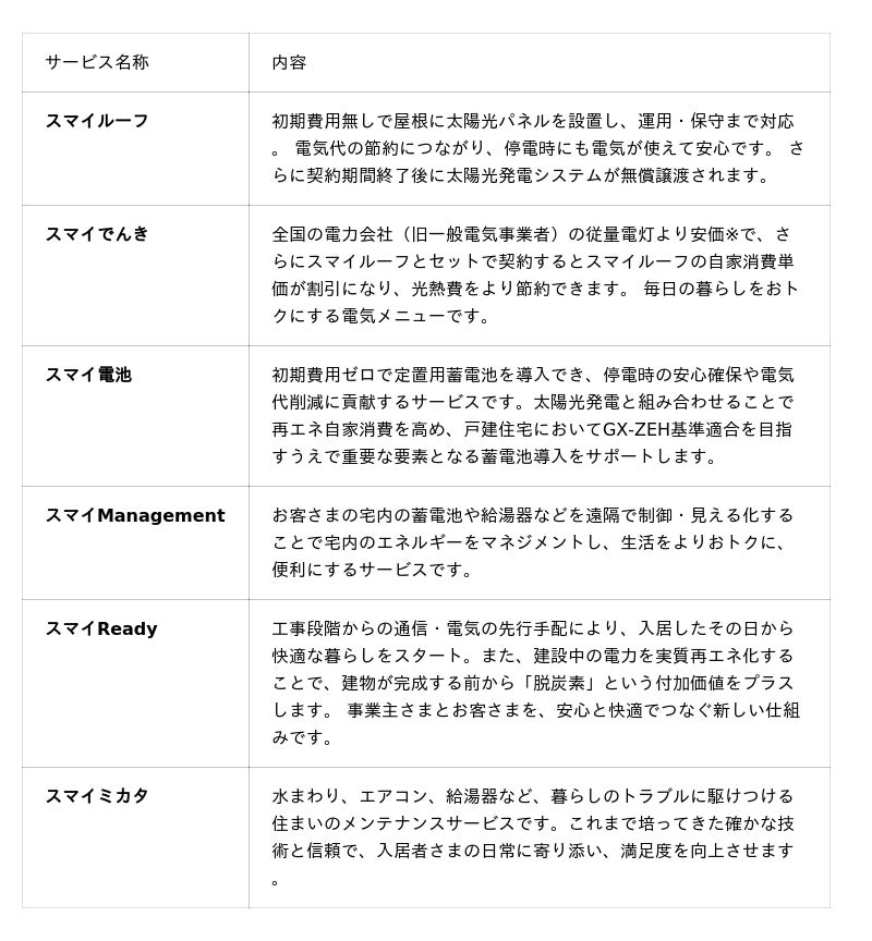 https://oghp.jp/sumaiselection/ ■ 背景と目的 近年、新築住宅市場においては、GX‐ZEH基準の導入や省エネ基準の適合義務化など、より高い環境性能・脱炭素化への対応が求められています。また、お住まいになるお客さまのライフスタイルの変化に伴い、住宅に求められる設備やサービス(太陽光発電、家庭用通信、スマートロックなど)はますます多様化・複雑化しています。 こうした中、住宅事業者さまにおいては、他社物件との差別化や付加価値の向上が急務となる一方で、多様なサービスを個別に手配・管理するための営業リソースや手間の負担増が大きな課題となっています。 大阪ガスマーケティングはこれらの課題を解決するため、Daigasグループの豊富な知見と長年の運用実績を活かし、住宅に最適な各種サービスを統合した「スマイ Selection」を立ち上げました。本ブランドを通じて、全国の住宅事業者さまにワンストップでの付加価値を提案し、住宅事業者さまの事業価値向上と、お住まいになるお客さまの豊かで先進的な暮らしの実現に貢献します。