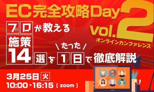 ジェイフロンティア株式会社(本社:東京都渋谷区、代表取締役社長執行役員:中村篤弘、以下「当社」)は、株式会社マーケメディア(本社:東京都品川区、代表取締役:三浦和広)が主催するオンラインカンファレンス「EC完全攻略Day Vol.2|プロが教える施策14選を” たった1日 “で徹底解説」(3月25日開催)に登壇いたします。
