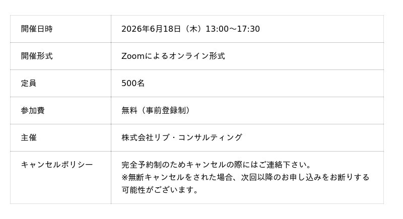 リブ・コンサルティングモビリティ・エネルギー業界に対するコンサルティング支援に強みを持つ株式会社リブ・コンサルティング(本社:東京都中央区、代表取締役:関厳、以下「当社」)は、「EVトランスフォーメーションフォーラム2026 ~モビリティ×エネルギー領域での共創戦略と電動化社会の完成図を描く~」を開催することをお知らせします。