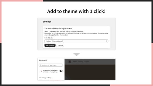 アプリをインストール後、複雑な設定やコード編集は不要。管理画面からワンクリックでサイトに追加でき、ウェルカムポップアップクーポンをすぐに表示できます。初めてアプリを導入する方でも迷わず使える設計で、導入までの手間を最小限に抑えながら、スピーディーにキャンペーンや初回購入施策を実施できます。
