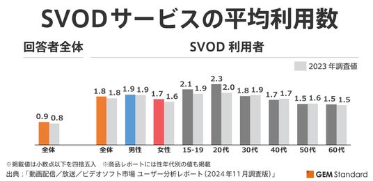SVOD利用者の平均利用サービス数は前年から微増、若年層で増加