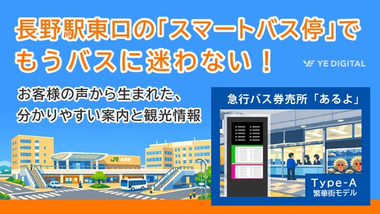 株式会社YE DIGITAL(本社:北九州市小倉北区、代表取締役社長:玉井裕治、以下、YEデジタル)が提供する「スマートバス停」が、長電バス株式会社(本社:長野県長野市、代表取締役:鈴木立彦、以下、長電バス)により導入され、2025年12月6日(土)より長野駅東口・急行バス券売所「あるよ」にて運用されています。お客様から