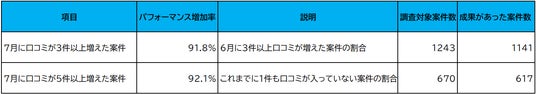 7月に3件以上の口コミでアクセス数や順位などのパフォーマンスが