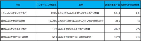 調査対象期間の口コミ増加がパフォーマンスに与える影響