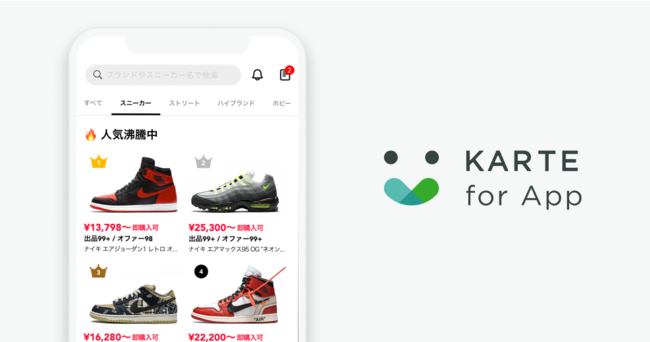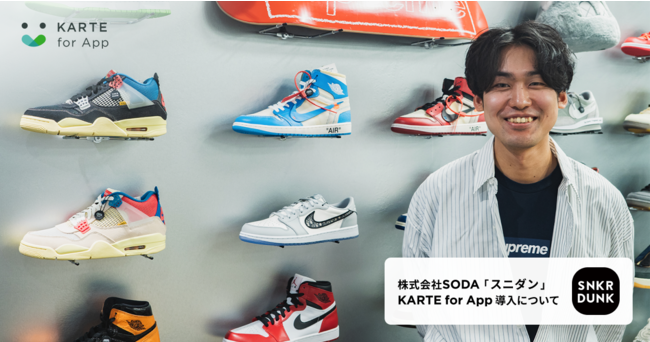 株式会社プレイド(東京都中央区:代表取締役CEO 倉橋健太)の提供するCXプラットフォーム「KARTE」のアプリ版「KARTE for App」が、株式会社SODA(本社:東京都渋谷区、代表取締役:内山雄太)の運営する国内最大級のスニーカー&トレカフリマアプリ「スニダン」に導入されたことをお知らせします。
