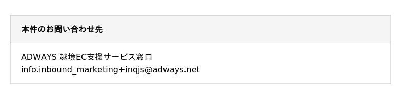 https://www.jetro.go.jp/theme/export/js-links/2025/178.html「越境ECに挑戦したいが、どこから始めればよいかわからない」といった日本企業の課題に寄り添い、“売れる仕組み”を構築・運用するパートナーとして、アドウェイズは実効性のあるグローバル展開支援を提供してまいります。