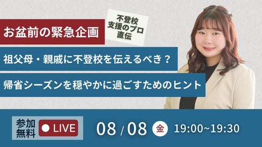 テーマは「【お盆前の緊急企画】親戚に不登校を伝えるべき?「不登校は甘え」と言われたら?~帰省シーズンを穏やかに過ごすためのヒント~」。