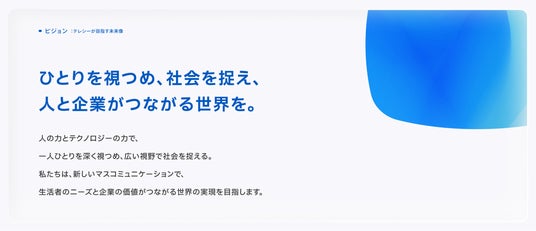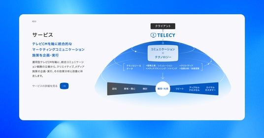 新サイトは、コーポレートカラーであるテレシーブルーを基調としたデザインで、洗練された表現を追求しています。テレシーの強みである「人の力」と「テクノロジーの力」を融合し、統合的なマーケティングソリューションサービスの提供を通じて、クライアント企業の未来を切り拓く意志を表現しています。また、ビジョンとバリューを通じて、私たちが目指す未来とそこに向けた姿勢を示し、その実現への決意と具体的な取り組みを掲げています。新サイトを通じて、これまで以上にマーケティングコミュニケーションに関する情報を発信し、多くの方々にとって参考となるトピックや実務に役立つ知見を、わかりやすく発信していきます。また、職場環境や企業カルチャーなど、未来の仲間に向けた情報発信も行っていきます。
