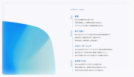 これら一連の流れを踏まえ、私たちが現在提供している統合マーケティングサービスの内容やその特長を内外ともに、より強化していくために、コーポレートリブランディングを行い、新しいビジョンの策定、ロゴのアップグレード、そして、サイトの全面リニューアル等を実施いたしました。