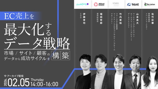 顧客対応クラウド「Re:lation(リレーション)」を提供し、6,000社以上(※1)の導入実績を誇る株式会社インゲージ(本社:大阪府大阪市、代表取締役:和田 哲也、以下インゲージ)は、2026年2月5日(木)に、EC事業の売上最大化を実現するためのデータ戦略をテーマとしたウェビナー「EC売上を最大化するデータ戦略~市場・サイト・顧客のデータから成功サイクルを構築~」をアーカイブ配信いたします。競争激化するEC市場において、市場分析から顧客体験(CX)向上まで、成長サイクルを構成する5つの重要領域における最新のデータ活用戦略と具体的なノウハウを、各分野のリーディングカンパニーが結集し解説します。