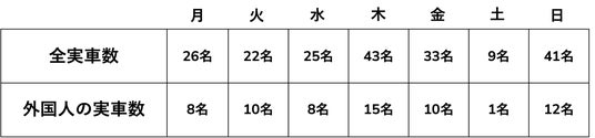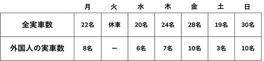 訪日外国人旅行客は、上半期で過去最多に上り、2024年1月~6月の訪日客は累計で1,777万7,200人に達しました。6月の訪日客は313万5,600人で、4ヶ月連続で300万人を超え、1-6月の訪日客による消費額も3.9兆円となり上半期の歴代過去最高を更新しています。それに伴い、訪日客のタクシー利用も増加しており、2024年6月に大和自動車交通・国際自動車が保有するタクシー車両100台で実施した調査 ※4では、1週間を通して訪日客の乗車率が32%を占める車両も確認できたほか、最も乗車が多かった日は、全体の乗車数に対しておおよそ半数が訪日客を占めました。