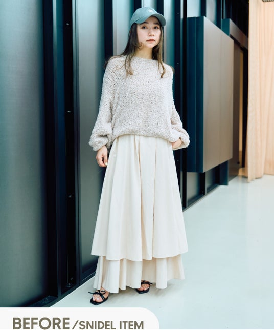 プロにスタイリングやヘアメイクをしてもらうことで、自分が得意なスタイリングの幅がまだまだ狭いということに気づかされました。特に、フェミニンなスカートにスポーティなパンツを合わせるというレイヤードスタイルが新鮮でした。低身長ということもあり、今までレイヤードには挑戦してこなかったのですが、今回の体験を機に挑戦してみようと思えました。
