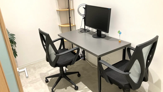 仕事の合間にオンライン会議のため個室ワークスペースを利用