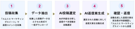 ※「AIリプライアシスト」の導入には、コムニコが開発・提供するSNS運用効率化ツール「コムニコ マーケティングスイート」をご契約いただく必要がございます。