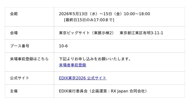 株式会社YE DIGITAL(本社:北九州市小倉北区 代表取締役社長:玉井裕治、以下、YEデジタル)は、2026年5月13日(水)~15日(金)の3日間、東京ビッグサイトで開催される『第17回EDIX(教育総合展)東京2026』に出展します。