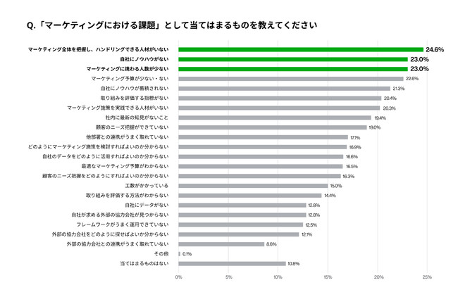 調査詳細あなたのお勤め先の「マーケティングにおける課題」として当てはまるものを教えてください(MA)
