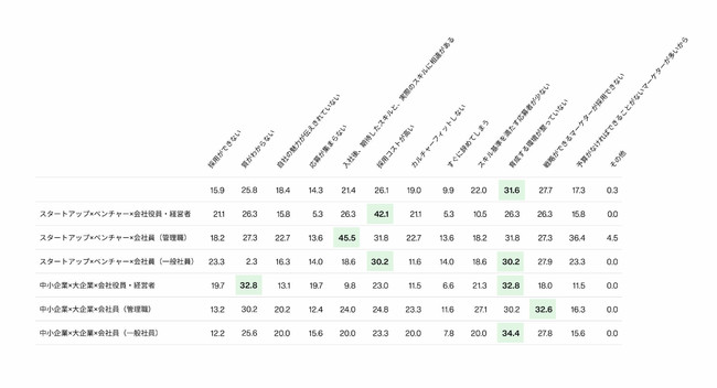 2022年3月に実施したマーケティングに関する調査※によると、「全体ハンドリングのできる人材がいない(24.6%)」、「自社にノウハウがない(23.0%)」、「マーケティングに携わる人数が少ない(23.0%)」、など企業の宣伝・マーケティング部門が抱える具体的な課題が浮き彫りになりました。特にスタートアップ企業においては、経験豊富なマーケターの採用コストが高いと答える経営者(42.1%)や、入社後に期待したスキルと実際のスキルに差異があると答えた管理職(45.5%)が多く、マーケティングを運営する組織体制に課題が見られます。また、調査設計が重要(67.5%)と分かっていても十分に実施できていない(39.5%)、十分に費用をかけられていない企業も多いことが分かりました。