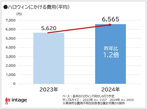 今年のハロウィンに「何かしら行う予定」と回答した人を対象に、かける費用について聞いたところ、今年は平均6,565円で、昨年の5,620円と比べて約1.2倍となりました(図表3)。2023年に実施した同調査で、コロナ前(2019年)のハロウィンにかけた費用を聴取したところ、5,980円でした。よって今年はコロナ前の水準を上回ったと言えます。どの層(性・年代)が今年の費用を押し上げたのかを見ると、昨年に比べて最も増加しているのは、女性40-49歳(昨年3,917円→今年7,146円)でした。