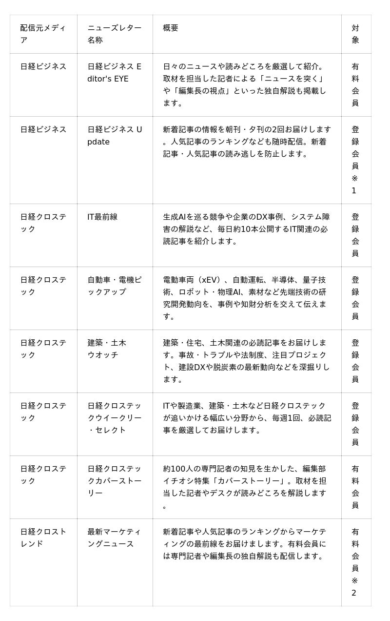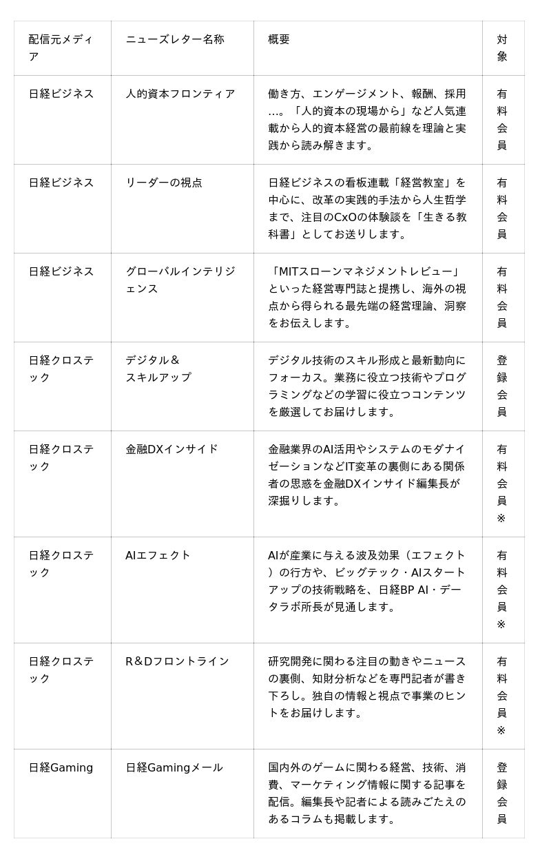 https://info.nikkei.com/newsletters/)も用意しましたのでぜひご活用ください。