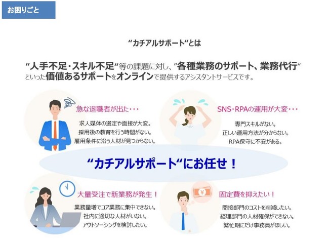 NTT印刷株式会社(代表取締役社長:柴田基靖、以下「NTT印刷」)は、新たに、あらゆるバックオフィス業務に関するお困りごとをお気軽に、安心して、ご相談いただくことができる“ワンストップ“サポートサービス「カチアルサポート(以下、本サービス)」を、8月1日より提供開始いたします。