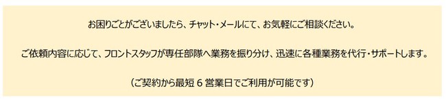 本サービスは、”時間単位かつオンライン”でご利用可能で、あらゆるバックオフィス業務に幅広く対応しており、人手不足・スキル不足といった課題解決を迅速にサポートします。