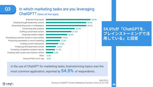 昨今、ChatGPTをはじめとする生成AIの活用が活発化する中、IDEATECHでは米国企業のコンテンツマーケティングにおけるChatGPTの活用の最新動向について調査を実施しました。