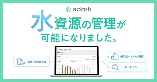 CO2排出量可視化・削減サービスプラットフォーム「e-dash」を提供するe-dash株式会社(本社:東京都港区、代表取締役社長:山崎冬馬、読み:イーダッシュ、以下「当社」)は、「e-dash」のクラウドサービス上で、水資源の情報を管理できる新機能の提供を開始することを発表します。これにより、CO2排出量と水資源の情報を一元管理することが可能となり、より効率的なESGデータの開示・報告が叶います。