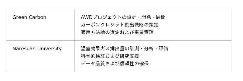 Green Carbonは、本連携を通じてPhitsanulok県におけるAWD実装モデルを高度化し、タイ国内でのスケール展開を加速させます。