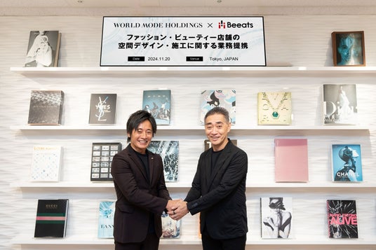 ワールド・モード・ホールディングス株式会社(以下WMH / 本社: 東京都渋谷区、代表取締役: 加福真介)は、リテール領域のブランド体験を共創する株式会社ビーツ(以下ビーツ/ 代表取締役社長:柏木又浩、大阪府大阪市中央区)と業務提携を締結。2社の強みを生かし、日本のファッション・ビューティー業界にグローバルデザインファームの革新的な空間デザインを提供し新たな店舗体験を創出します。