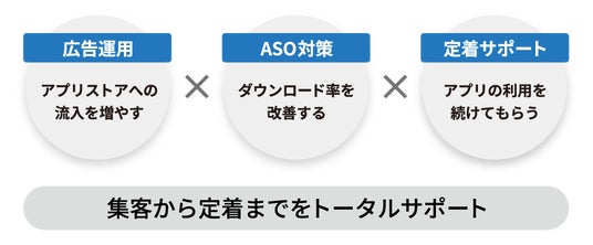 広告運用とASO(アプリストア最適化)対策を同時にご提供し、理想的なユーザー獲得を実現。アプリマーケティング黎明期から多くのアプリを総合支援しているReproだからできる、ユーザー獲得から定着までの課題を一挙に解決するアプリ集客サービスです。