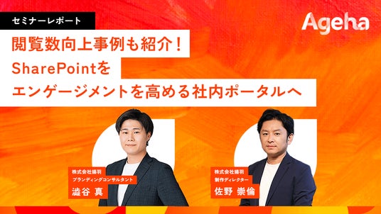 本セミナーでは、株式会社揚羽のブランディングコンサルタント 澁谷真に加えて、制作ディレクター 佐野崇倫が登壇し、SharePointを活用した社内ポータルサイトにおける課題整理から、エンゲージメント向上につながる改善の視点、具体的な設計・運用のポイントまで解説しています。