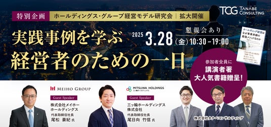 ホールディングス・グループ経営モデル研究会拡大開催・特別企画「実践事例を学ぶ 経営者のための一日」開催概要■日時:2025年3月28日(金)10:30~19:00